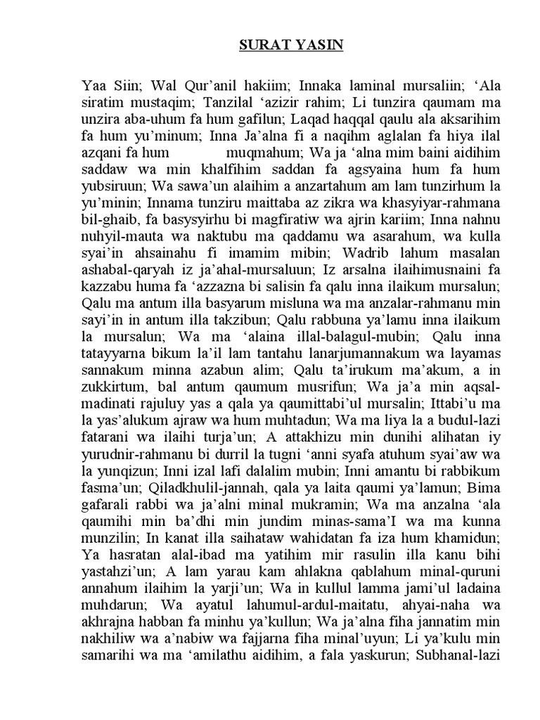 Surat Yasin 1-83 / Surah Yasin Ayat 1 83 Tulisan Arab Latin Dan Terjemahan Bahasa Indonesia Tribunnews Com Line Today - Surat berjumlah 83 ayat itu masuk dalam surat makiyah atau yang diturunkan di makkah.. Surat berjumlah 83 ayat itu masuk dalam surat makiyah atau yang diturunkan di makkah. Arti surat itu hanya allah yang tahu, namun sebagian ulama tafsir menakwil arti surat itu dengan nama nabi muhammad. Surat ini termasuk golongan surah. Berikut ini bacaan surat yasin lengkap 83 ayat dalam bahasa arab dan latin, beserta artinya. Rukun adalah kerangka yang bila ditinggalkan, shalat itu menjadi tidak sah.